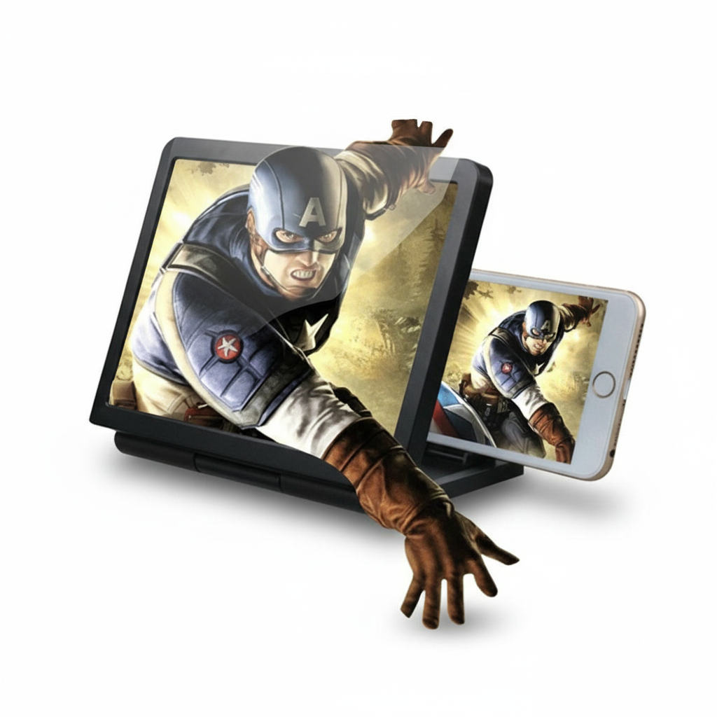 Oglądaj filmy, graj w gry lub prowadź rozmowy wideo z trzykrotnym powiększeniem. Składany na płasko, idealny w podróży. Działa natychmiastowo, bez zas